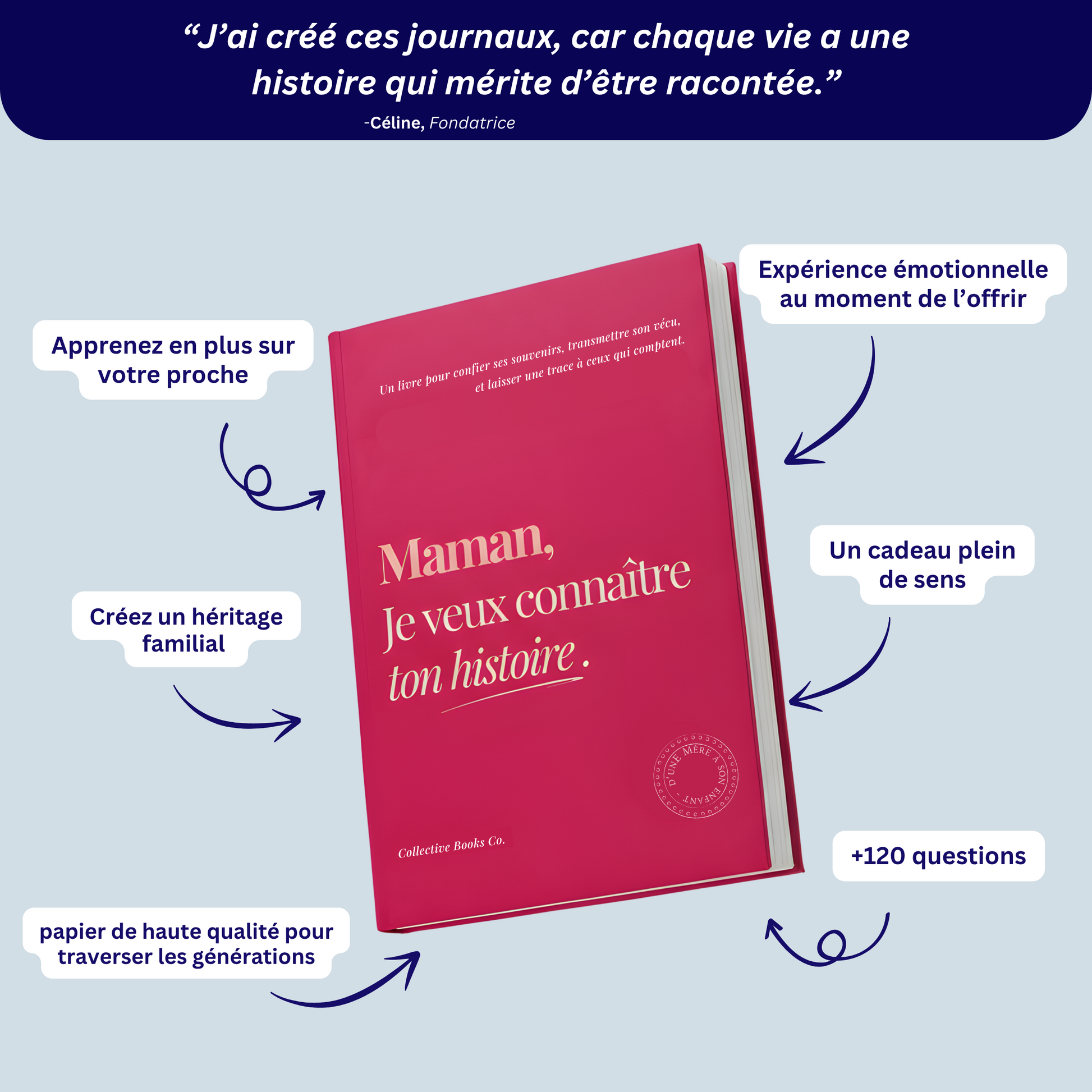 À travers plus de 200 pages de questions soigneusement choisies, ils replongeront dans leurs plus beaux souvenirs : leur enfance, leurs premières amours, leurs réussites, leurs rêves et les moments qui les ont façonnés.