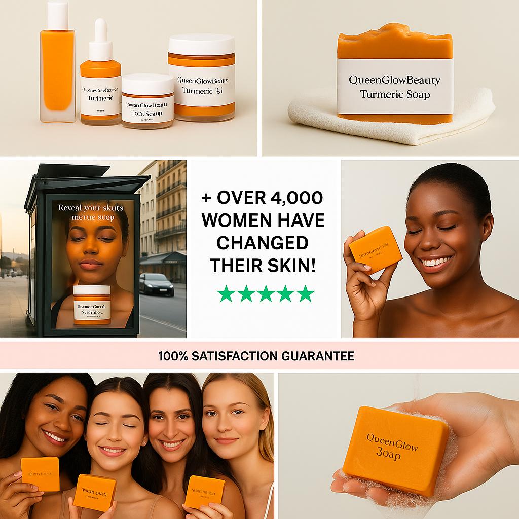 Formulated with turmeric, known for its brightening and purifying benefits, the QueenGlowBeauty routine evens out skin tone, fades dark spots, and restores your skin’s natural glow.Made with 100% natural ingredients, it works deep within to reveal softer, healthier, more radiant skin. From the very first use, your complexion looks brighter and imperfections are visibly reduced.